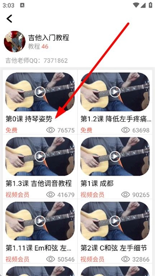 4、最后我们可以在视频播放页面,可观看吉他教程视频进行学习。
