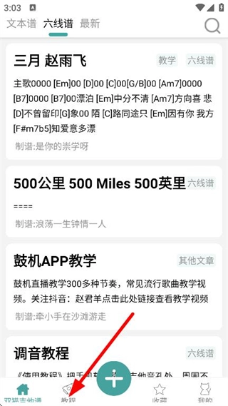在小鹿吉他谱软件的底部找到“教程”按钮并点击,即可进入教程页面。