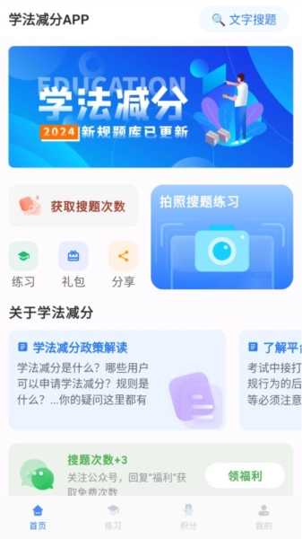学法减分宝典是广州蜂羽云科技有限公司开发的一款手机端学法减分拍照搜题应用,主要提供线上交通法规学习服务。不少车主可能都有过不小心闯红灯、压实线的经历,一次就被扣3分,是不是常常觉得12分根本不够用?这时候不妨试试“学法减分”。借助这款软件学习交通规则,就能抵扣交通违法的扣分,还能帮助你顺利通过相关考试。