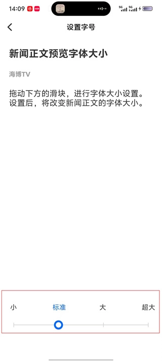 4、在【设置字号】页面,拖动滑块可将字体调整为小、标准、大、超大等规格,适配不同阅读需求。