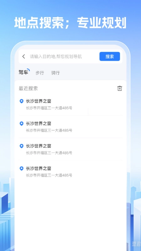 2、在目的地搜索板块,一键提交地点信息,在线搜索确定即可。