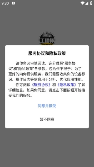 1、软件安装完成后启动,界面会弹出服务协议与隐私政策,点击“同意”按钮即可。