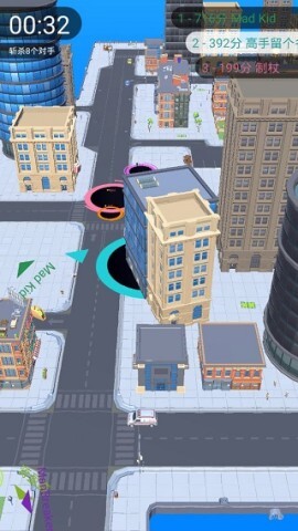 当你在顺利寻找物品时,竞争对手也在拼命吞噬。在黑洞大作战里,互相之间可以相互吞噬,只要对方黑洞的体积比你大。因此,吞噬时要时刻警惕对手的动向。