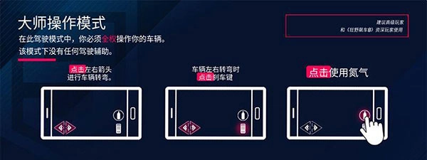 在智能操作模式下,玩家不用顾忌精细的转向,只要根据提示大幅滑动选择路线即可,熟练过弯才能够驾驭大师操作模式。
