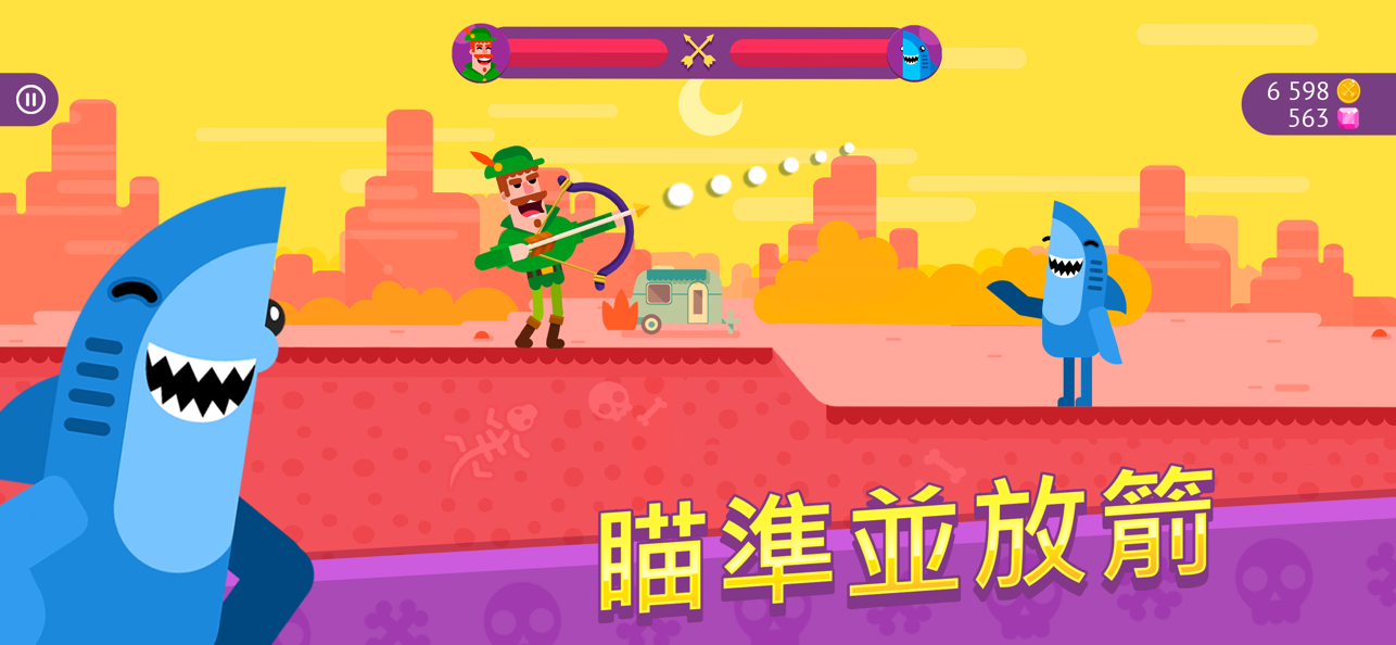 1、玩家需操控拉弓的力度与角度来射出弓箭,目标是准确击中对手。