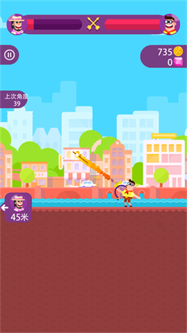 3、在每一关开始的时候我们都可以看到对阵的两个人,并且由于每个人的武器都是不一样的,在游戏中玩家们需要能够很好地去根据那些角色的不同来选择不同的攻击方法,以及正确的技巧。