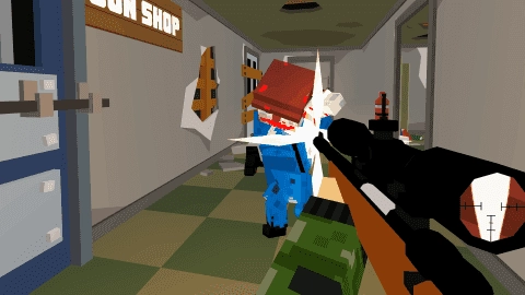 3、立方第一人称射击游戏,具有像素风格的游戏画面和逼真的物理图形。