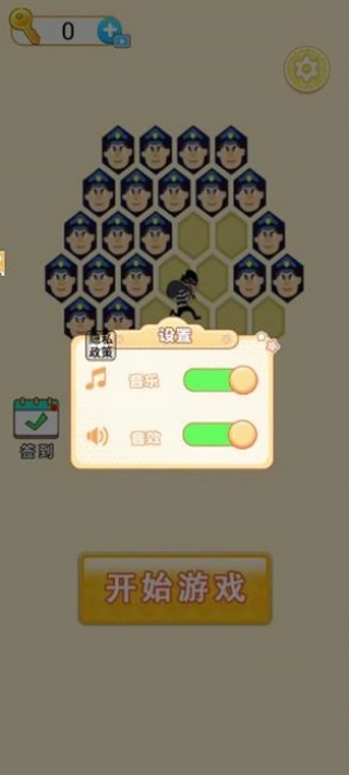 1.进入到游戏之后,你可以设置音乐的大小,每天签到有各种福利免费领取。