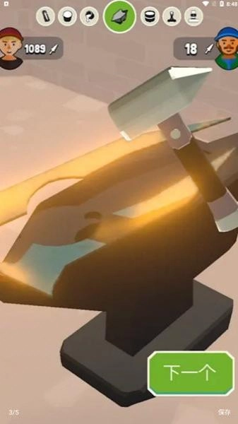 4、对武器进行打磨抛光,提升武器的外观和属性,完成后可进入下一个制作环节,不断解锁新的武器类型。