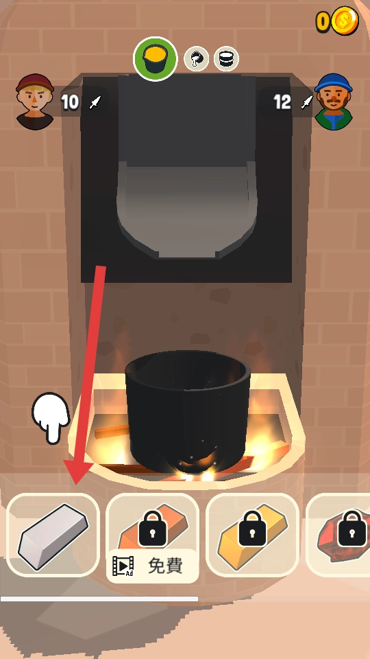 在铁匠游戏里,制作武器的第一步是把银色金属锭放进熔炉,通过熔炼金属锭来获取制作武器所需的原料。