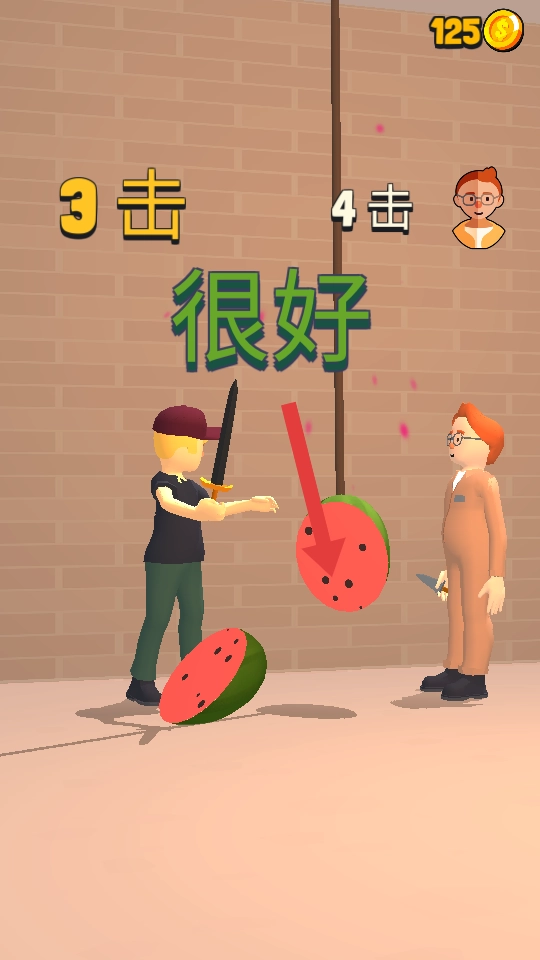 3、完成武器制作后,进行砍西瓜测试,通过来攻击西瓜检验武器的锋利度和性能,获取了金币的奖励。
