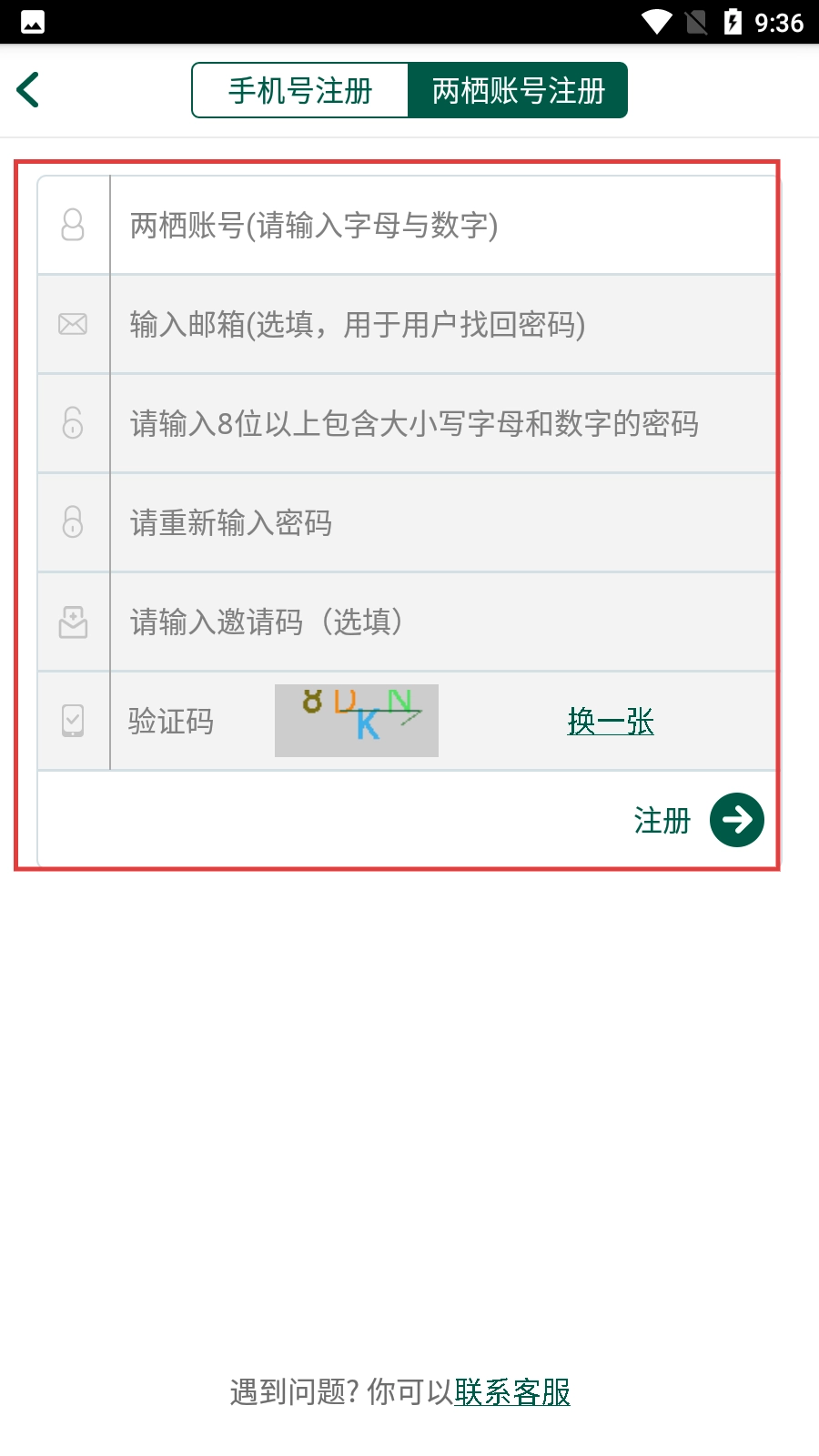 4、选择【两栖账号注册】时,输入字母与数字组成的两栖账号、选填邮箱、密码等、点击【注册】按钮即可完成两栖账号注册流程。