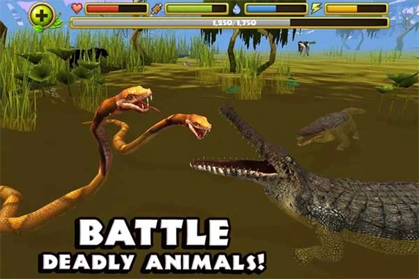 2、生态互动丰富:沼泽中不仅有猎物,还有竞争对手(如蟒蛇、同类鳄鱼)与共生生物,玩家的行为会引发连锁生态反应,让生存环境更具动态变化。