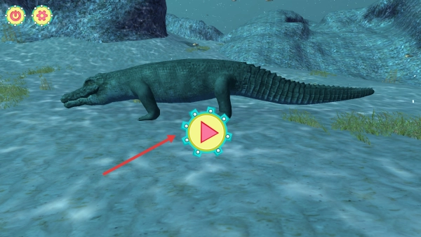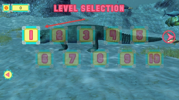 1、点击鳄鱼身上的播放按钮进入关卡选择界面,建议优先选择LEVEL1,借此熟悉通过左侧虚拟摇杆控制鳄鱼移动的操作。
