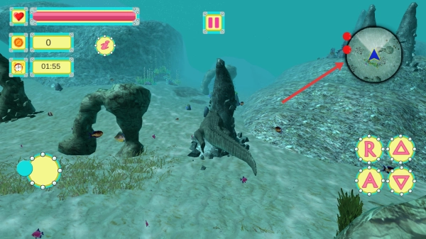 2、进入关卡后看右上角地图指引目标点避开危险如礁石用右侧按键R△等交互攻击。