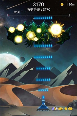 3.如果击败陨石成功的话,你就可获得大量金币,金币可以升级你的飞船。