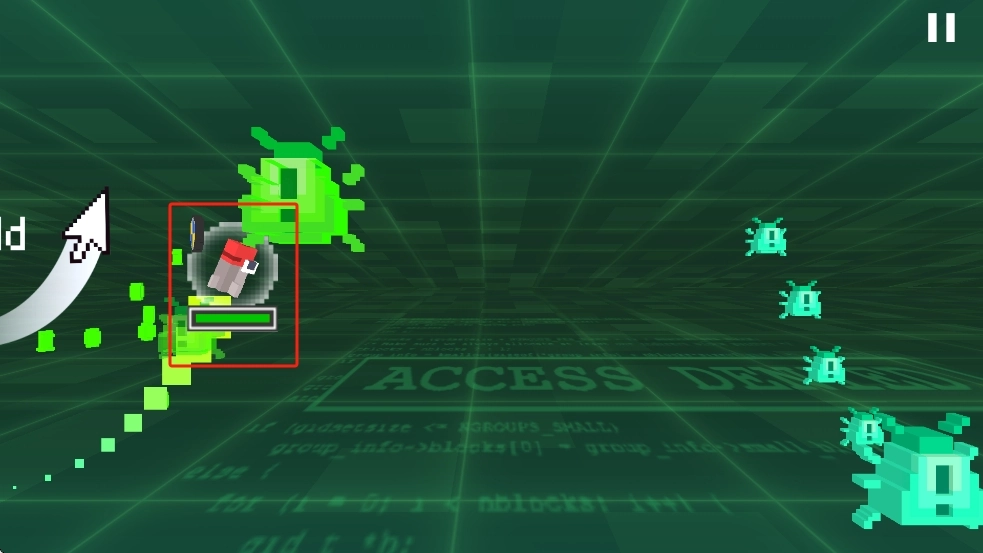 在主界面点击左上角的Start按钮,就能进入游戏,开启操控角色于赛博空间抵御病毒、收集光标的旅程。