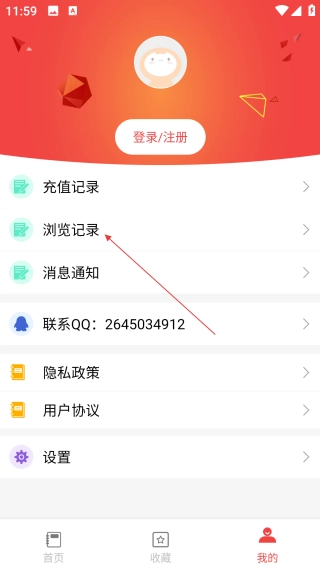 2、在个人中心页,点击【浏览记录】,进入浏览历史的查看界面。