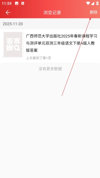 3、在浏览记录页,点击右上角【删除】,进入记录的选择删除流程。