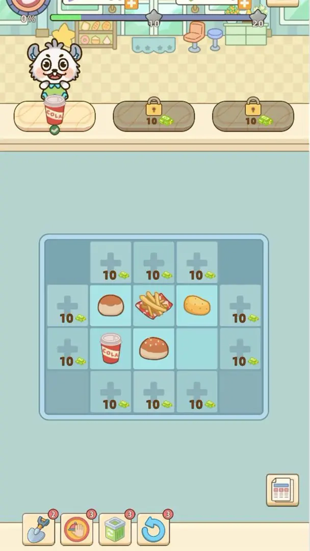 2.消除赚取金币,升级设施,扩大餐厅规模和影响力。