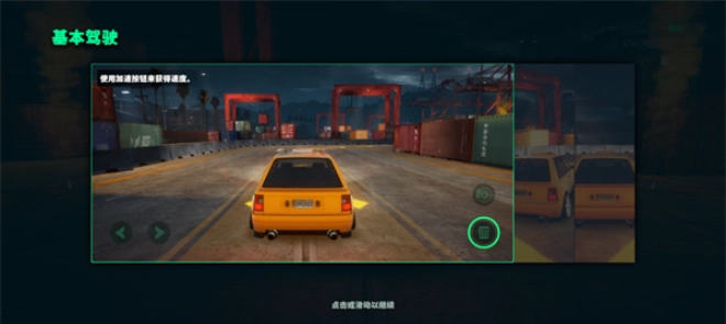 1、点击右侧的踏板按钮来获取加速效果,这样汽车就能向前行驶了。