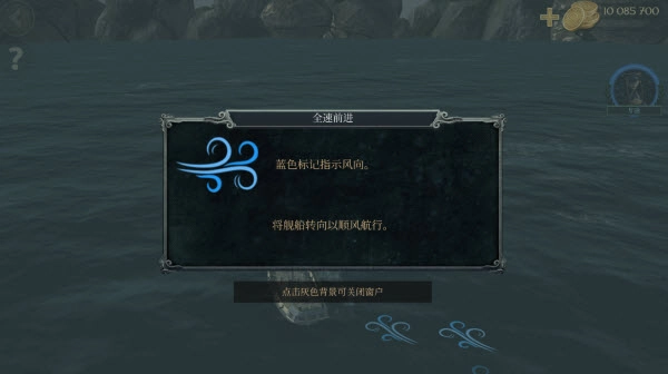 1、蓝色标记用于指示风向,舰船需据此调整航向以实现顺风航行。