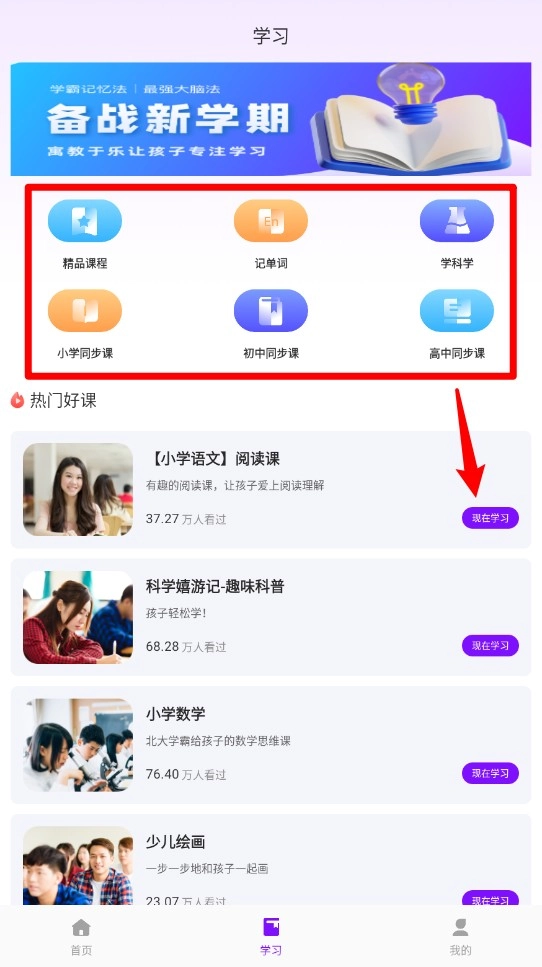 2、进入课堂:选择课程进入教学页面,开始在线学习。