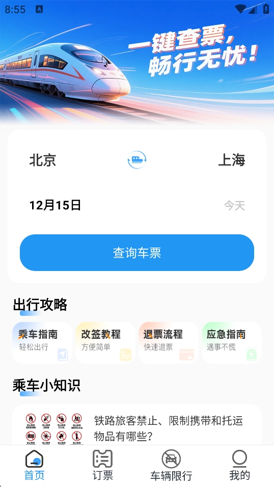 慧行火车订票是一款集火车票查询、预订以及相关出行服务于一体的综合性工具。该软件围绕精准的票务数据对接这一核心,不仅支持快速查票和在线预订功能,还整合了个性化出行攻略与实用乘车指南,致力于为用户营造高效且便捷的火车出行体验。