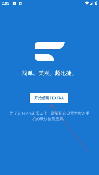 1、启动Textra短信应用,点击界面上的【开始使用】按钮。