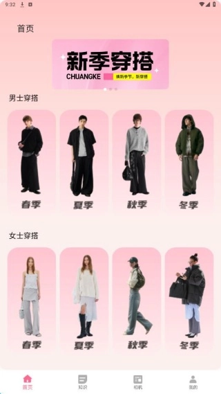 1、进入安装后的首页,能看到适合男士和女士的穿搭信息展示。
