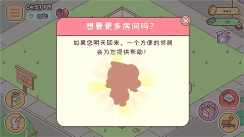 2、等到第二天,再去点击一次,那么就会出现一个邻居帮你扩建。
