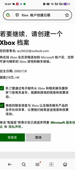 11、进入Xbox(www.xbox.com)完成上面几步注册账号之后的信息补充,勾选下面2项。