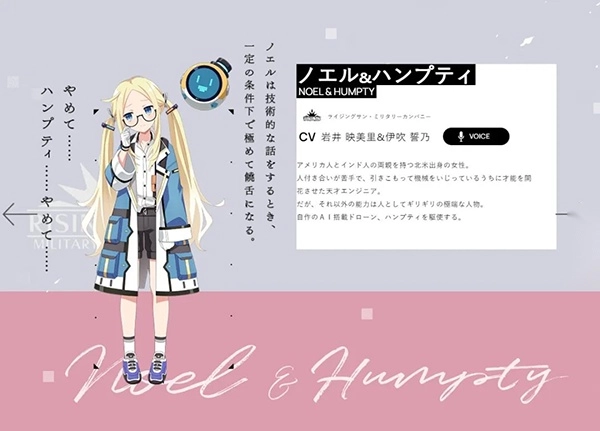 性格内向的天才工程师,擅长操纵AI无人机“ハンプティ”,在战斗中提供强力支援。