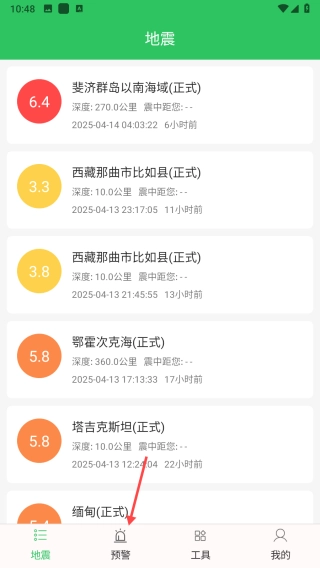 地震预警助手怎么查看地震数据