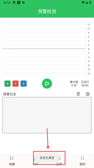 1、启动软件后进入地震界面,点击界面下方的【预警】按钮