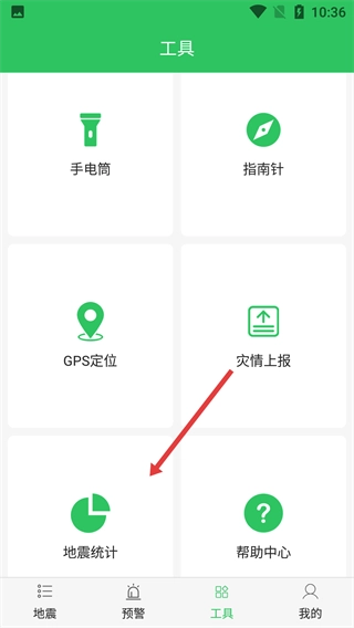2、在工具页面,点击【地震统计】选项。