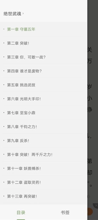 3、在阅读界面轻点屏幕,弹出菜单后选择“目录”。
