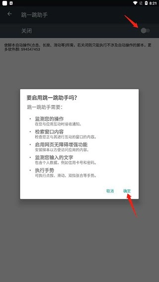 1、本站为大家提供的是跳一跳辅助神器免Root版本,安装完成后需先开启无障碍服务,点击即可前往开启;
