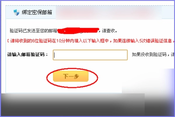 6、系统会自动向新修改的邮箱发送验证码,输入该验证码后点击下一步,即可完成邮箱修改操作。