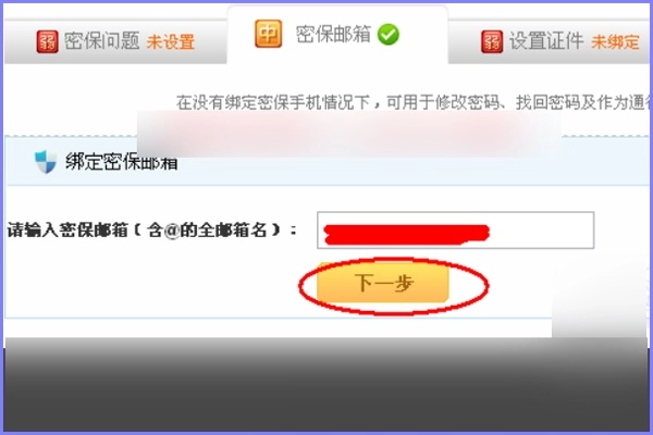 5、关闭当前页面,进入指定页面后,输入需要修改的新邮箱地址,然后点击下一步。