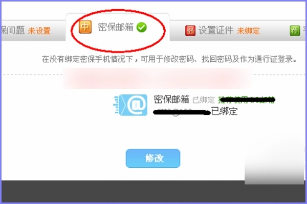 2、进入需要修改邮箱的网页,点击密保邮箱,进入。