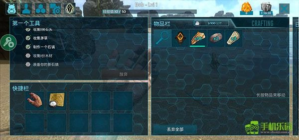3、选择之后就可以开始你的冒险之旅了,刚开始玩家们需要按着右上方的任务进行操作,你需要收集石头、木材等,制作各种武器装备去探索这个世界;