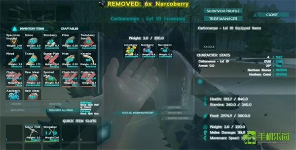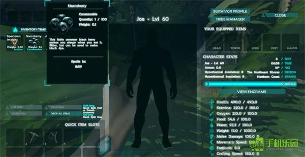 5、可以查看你的属性,如生命值、耐力、食物、水量等等,你应该时刻注意着自己的属性,不然可能会导致游戏的失败;