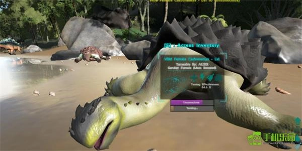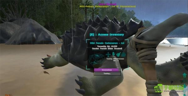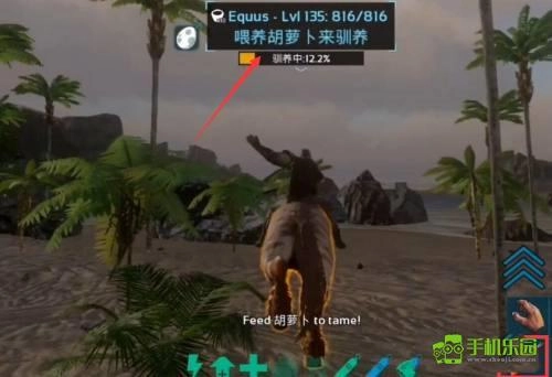 接下来准备阶段到此结束,接下来找到自己想要驯服的恐龙,然后使用拳头,棒子这种钝器来不断攻击恐龙,切记不要使用弓箭这种锐利的武器;