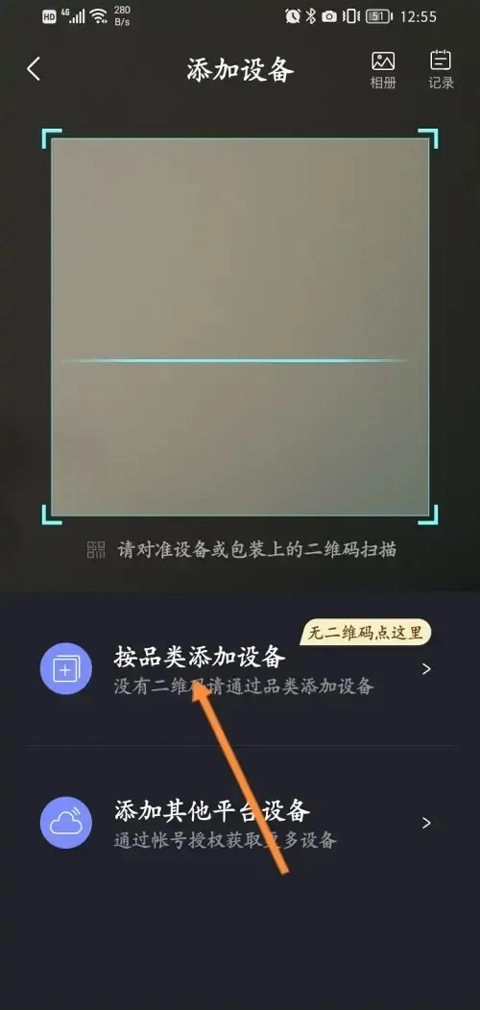 4、添加设备时可扫码添加,如果设备没有二维码可以点击【按品类添加设备】进行添加。