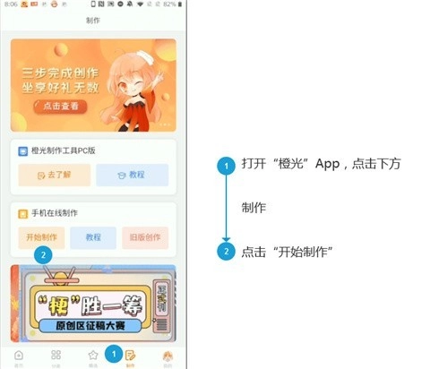 1、在本站的橙光游戏板块中,按顺序点击“创作”选项与“开始制作”按钮;
