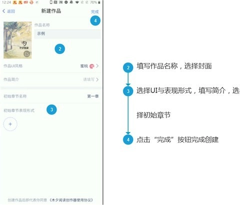 3、在新建作品中填写相关信息,如作品名称、作品封面等等;