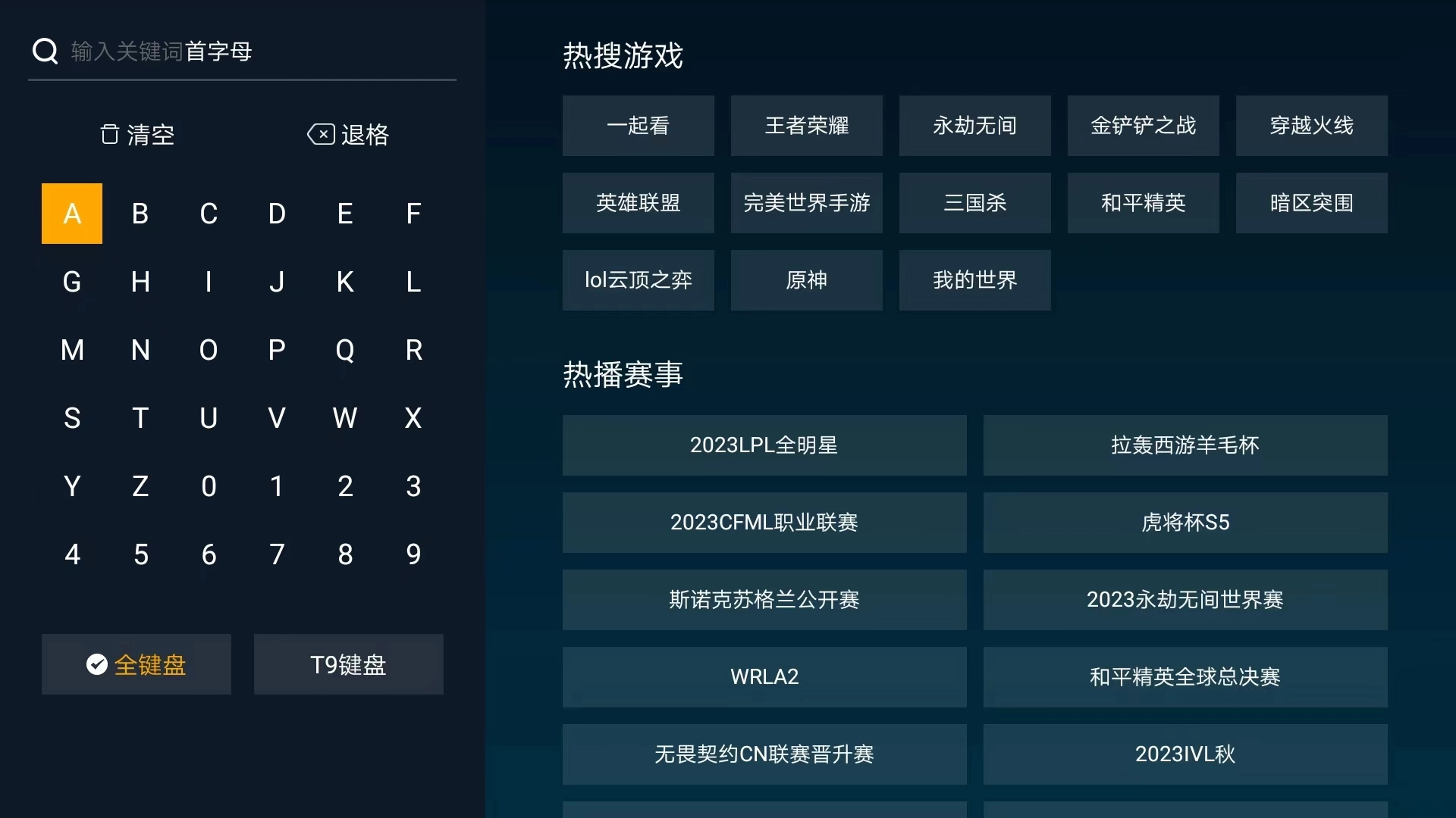 2、进入搜索界面,通过左方的键盘输入关键词的首字母,
