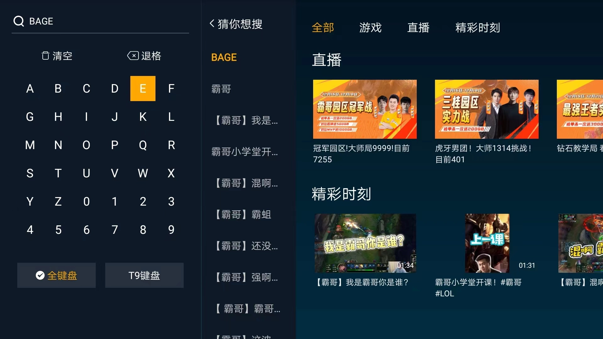 4、可看到包括【全部】、【游戏】、【直播】和【精彩时刻】频道,在直播频道中选择相应的主播,