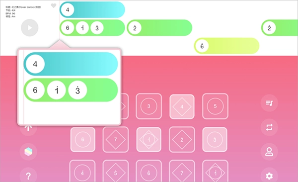 当您按对按键时,乐谱会向左移动到下一个需要演奏的音符。
